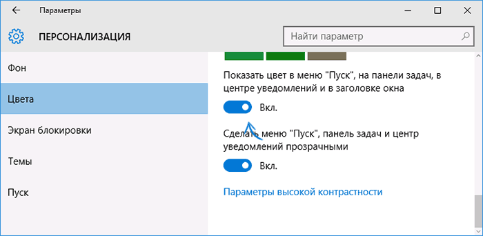 Тепер функція повернулася, і ви можете змінити ці кольори у налаштуваннях персоналізації у відповідному розділі «Кольору». Просто активуйте пункт «Показати колір в меню Пуск, панелі завдань, в центрі повідомлень і у заголовку вікна».