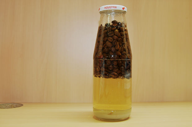 2. Ретельно миємо руки. Засипаємо в пляшку кавові зерна.