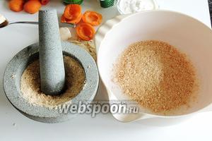 Раздавливаем в крихту печиво, зручним для вас способом.