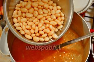 Всипати квасолю, додати подрібнений часник.
