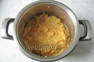 Викласти терті яблука в каструлю з товстим дном і додати воду.