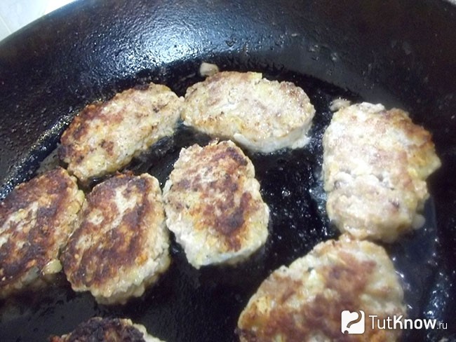 6. Смажте котлетки з одного боку до рум’яного кольору, приблизно 5 хвилин. Потім переверніть на зворотний бік і прожарте стільки ж часу. Якщо хочете, щоб котлетки трохи пропарились, то зменшіть вогонь до самого маленького, закрийте сковороду кришкою і тушкуйте 5 хвилин. Страва готова і можна подавати до столу.