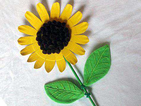 Аплікація “Соняшник” стане прекрасним прикладом того, як можна виконати осінні вироби для дітей 5-6 років. Для аплікації знадобляться такі матеріали: диск – 2 штуки, жовта папір – 1 лист, зелена папір – 1 лист, пластилін – 1 брусок чорного кольору, ножиці, насіння, клей. Нарізаємо смужки з паперу довільної форми, зрізаємо куточок, це будуть пелюстки. Беремо диск і по колу наклеюємо пелюстки рівною стороною, спочатку використовуємо жовту папір, потім – зелену. Тепер закриваємо другим диском наклеєні пелюстки. На поверхню першого диска наносимо тонким шаром пластилін. Приклеюємо насіння. Аплікація “Соняшник” готова.