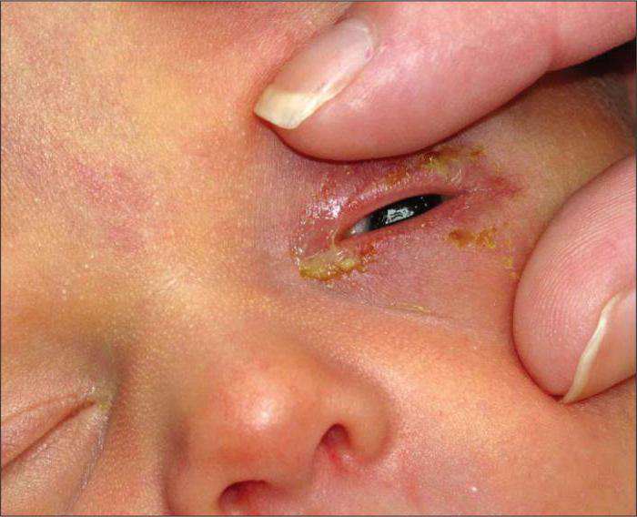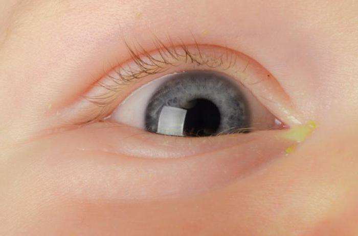 - малюк не може (насилу) відкрити очі з-за того, що його повіки злиплися;
