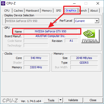 Також ви можете перевірити, яка відеокарта стоїть на комп’ютері за допомогою програми CPU-Z. Дана програма розроблена для отримання інформації про процесор, але якщо перейти на вкладку «Graphics», то тут буде вказана інформація про відеокарту.