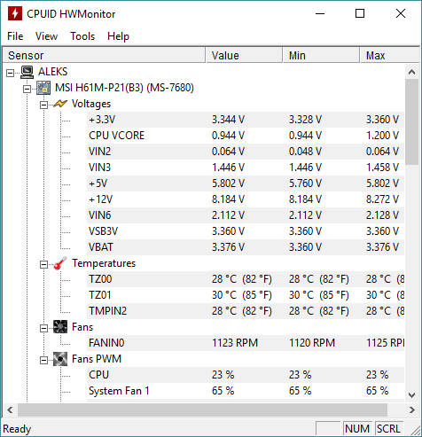 HWmonitor – програма для перегляду поточних параметрів роботи комп’ютера. Дана програма дозволяє контролювати температуру, швидкість обертання вентиляторів і робочі напруги.