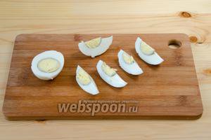 Відварені яйця ріжемо вздовж на 4-6 шматочків.