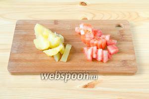 Відварну картоплю і помідор ріжемо невеликими кубиками.