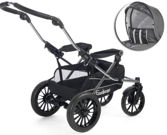 Дитячі коляски Emmaljunga мають сталий, але при цьому легке шасі, у якого хороші амортизатори, що забезпечують плавний хід. Ідеально продумана і система фіксації коліс і гальмування. Внизу розташована металева вантажний кошик для продуктів. У комплект коляски входить дощовик і накидка на ніжки.