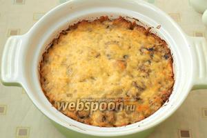 Запікати капусту з куркою і печерицями близько 20-25 хвилин до рум’яної скоринки. Подавати можна відразу, розклавши на порції. Приємного апетиту!