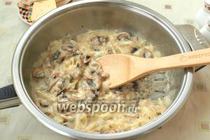 Додати в сковороду борошно і сметану, добре перемішати і тушкувати 5 хвилин, щоб соус трохи загус.