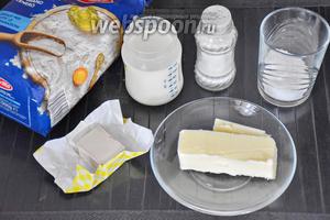 Для приготування тіста для ватрушок нам знадобиться борошно, вершкове масло, молоко, дріжджі свіжі, цукор і сіль.