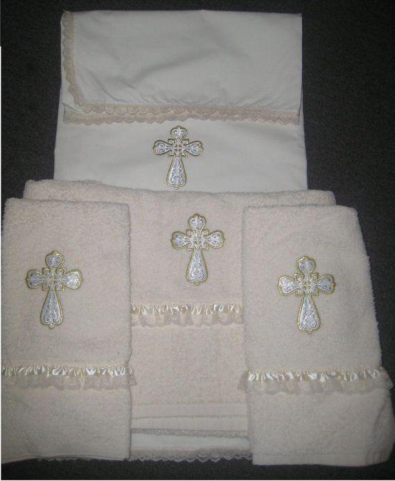 Хрестильне рушник (крижма, або різа) – біла пелюшка або тканину, в яку загортають дитину після занурення в купіль. Вона обов’язково повинна бути світлих тонів, так як означає чистоту і незламність перед Богом.