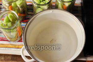 Заливаємо гарячим маринадом огірки чайот, закриваємо кришкою і даємо настоятися 15-20 хвилин.