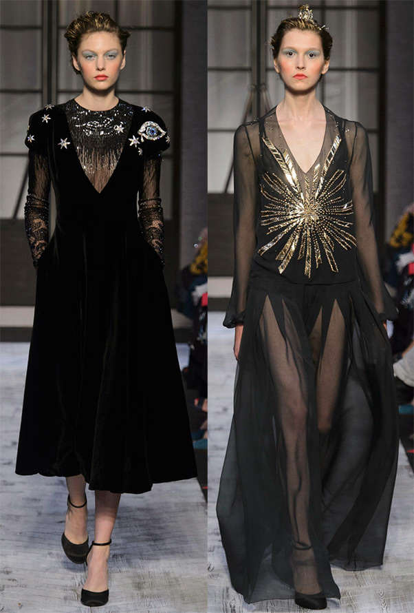 Тому, багато хто люблять поєднувати чорне із золотим і срібним, адже так хочеться відчути себе царицею ночі! Милитта вирішила поділитися своїми знахідками з модних колекцій сезону осінь-зима, і вибрала сукні, які виблискують золотом і платиною самі по собі.