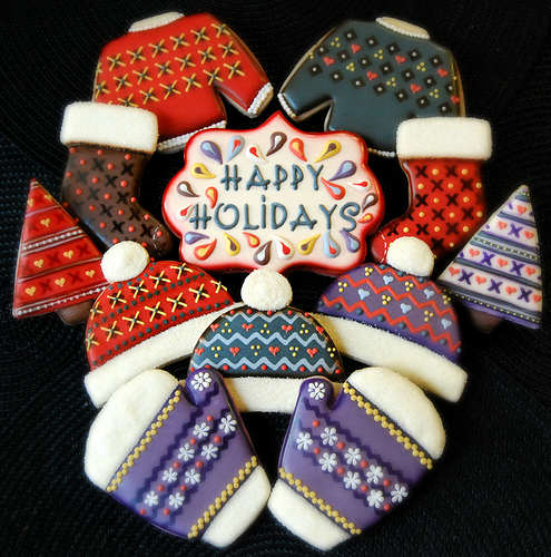 Для прикраси використовуйте розплавленої на паровій бані або в мікрохвильовій печі кольоровою глазур’ю Candy Melts (спочатку покриваємо зверху кожне печиво суцільним шаром, даємо цього шару застигнути, потім саморобним кулінарним мішком з мініатюрним отвором знизу, дуже акуратно і слабо натискаючи, малюємо будь-дизайн), будь саморобної глазур’ю, кулінарної кольоровою мастикою, розплавленим шоколадом, декоративної обвалуванням, кольоровим цукром, їстівними кулінарними намистинами, цукровою пудрою – щось із цього створюється своїми руками, інше можна знайти у вільному продажу в Рунеті. Щоб робити плоскі фігурки для прикраси печива, беріть маленькі металеві формочки для печива, ставте їх на вощений кулінарну папір і заливайте всередину тонким шаром розплавлену глазур, чекайте, поки остання застигне і, акуратно відокремивши фігурку від вощеного паперу і форми, кріпите на печиво зверху – на пару крапель розплавленого глазурі або будь-аналог. Або малюйте глазур’ю на чистому поліетилені і чекайте, поки фігурки/написи захолонуть. Написи/малюнки в охолола глазурі і в мастиці також можна робити за допомогою ретельно вимитих печаток. Не забудьте, що і всередині печива ви можете вирізати меншими за розміром формочками інші фігури – наскрізь. А також те, що за допомогою харчової фарби можна зробити світле тісто кольоровим саме по собі. А це ідеї дизайнів для натхнення: