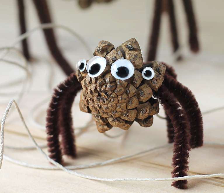 Вихідні варіанти виконані за допомогою спеціальних йоржиків для труб (ноги павуків), які у нас поки ще не продаються, тому вам доведеться в декілька шарів з клеєм обернути в гофровану/крепированную папір, тканину або підфарбовану вату дріт. А від кількості очей та їх розміру залежить характер конкретного павука)