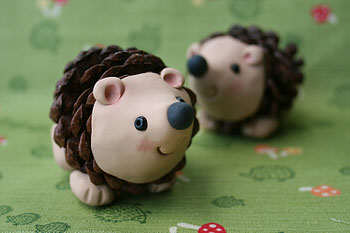 2) А ось у цієї моделі у створенні голови і лапок їжачка вам допоможе полімерна глина. Перед тим, як запікати деталі в духовці, притисніть кожну з них до своєї гулі – тоді задній контур деталей буде повністю повторювати форму шишок і деталі в твердому вигляді набагато краще приклеїти до цих шишок.