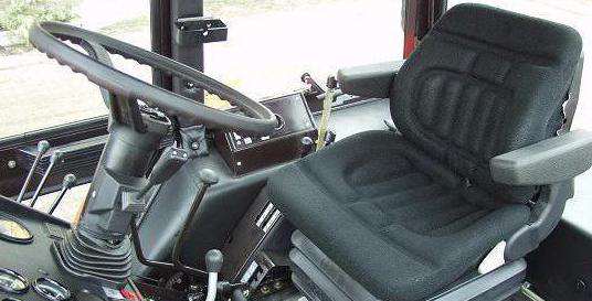 У даної техніки травмобезопасная циліндрична кабіна з захисним жорстким каркасом з гнутих профілів. Скла вклеєні тоновані сферичні. Заднє і бічне вікна відкриваються. В інтер’єрі кабіни використані формована оббивка і панелі, килими. На даху розташований аварійний люк і вентиляційно-опалювальна система, а також панель управління деякими електричними приладами, освітленням та сигналізацією, козирком проти сонця, радіоприймальним пристроєм, дзеркалом заднього огляду. Сидіння має зручну спинку. Оббивки і звукопоглинальні мастики забезпечують звуко–, тепло – і вологоізоляцію. Завдяки опаленню, вентиляції і очисникам повітря умови роботи завжди комфортні.