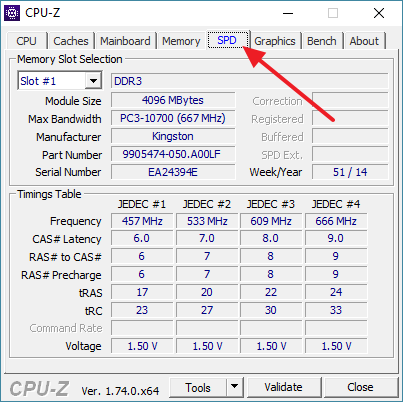 Якщо ви бажаєте отримати більш детальну інформацію про кожну з планок встановленої у вас оперативної пам’яті, то перейдіть на вкладку «SPD».
