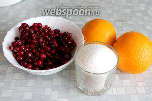 Для приготування свіжого варення взяти журавлину, великі апельсини, цукор.