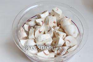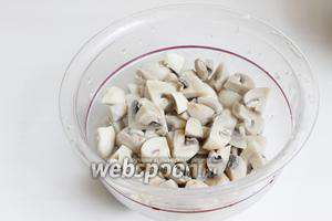 Печериці почистила і порізала. Відварила швидко в киплячій воді, приблизно 3 хвилини.