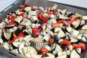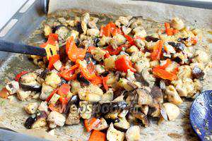 Можна всі овочі обсмажити на сковороді, злити масло, змішати і додати часник, зелень. Але мене зацікавив спосіб запікання в духовці. Так, виходить не так жирно. Загалом, зробіть обов’язково. За рецепт дякую Ірі.