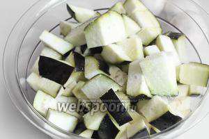 Баклажан я спочатку порізала і засипала сіллю. А поки ми будемо готувати інші овочі.