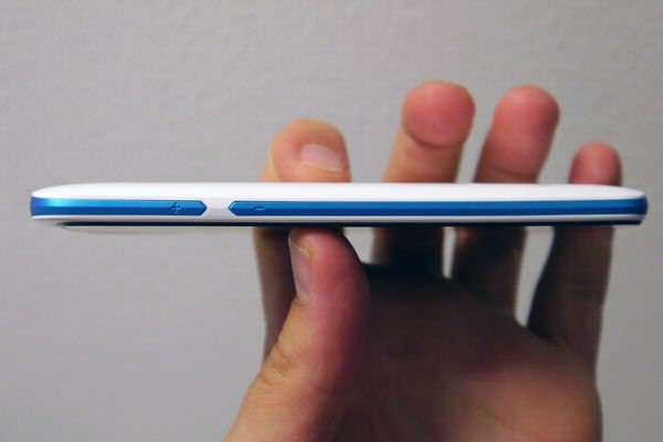 Тут розривається пластикова смужка, яка окантовує телефон. Її кінці – це не що інше, як елементи, за допомогою яких можна регулювати гучність відтворення музики і відео, а також переводити апарат з одного звукового режиму в інший. Своєрідна “фішка” пристрою, ви не знаходите? Але дійсно видовищно це виглядає тільки в білій версії пристрою. У чорній ж таке рішення практично непомітно. Можливо, причина полягає в тому, що в останньому випадку відсутній належний контраст.