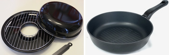 Це порівняно новий винахід у світі кухонного посуду, яке займає своє почесне місце не тільки на професійну, але й на домашній кухні. Різні види сковорідок-гриль у великій кількості міцно влаштувалися у всіх магазинах кухонного приладдя. Полиці торгових приміщень рясніють вибором всіляких сковорідок з ребристою поверхнею на будь-який смак і колір: чавунні, алюмінієві, з нержавіючої сталі; з емальованим покриттям або антипригарним.