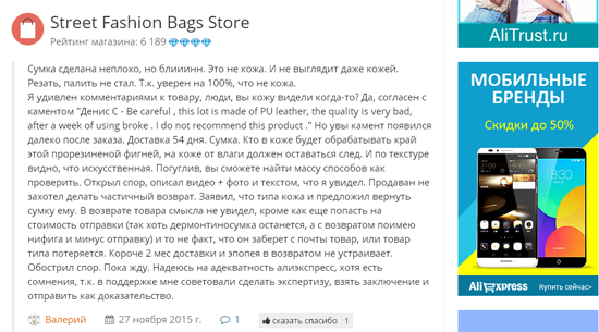 У багатьох людей китайський шопінг асоціюється, в першу чергу, з AliExpress – гігантським маркетом, що об’єднує безліч продавців. Купувати тут часто набагато вигідніше, ніж у традиційних торговельних центрах або локальних інтернет-магазинах. Але і найбільша товарна майданчик не позбавлена недоліків, властивих шопінгу в Піднебесній в цілому. Товари від недобросовісних продавців іноді супроводжується схвальними відгуками, які на ділі виявляються такий же фальшивкою, як і описуване ними високу якість продукції.