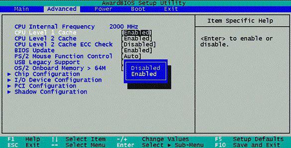 Однак повернемося до працюючій системі. Може бути й таке, що в налаштуваннях треба буде вимкнути Shadowing та Caching. Правда, це не завжди потрібно.