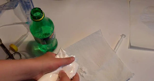 занурте серветку з содою в вогнегасник і швидко закрутіть кришку. Про
