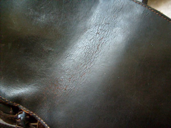 Груба щільна шкіра нашої дамської сумки виявилася не надто міцною. З часом вона почала кришитися по згину.