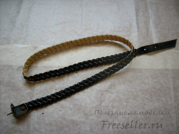 4. Приступаємо до виготовлення нового ременя. Його каркасом стане старий поліуретановий поясний ремінь. Зрізаємо з нього пряжку.