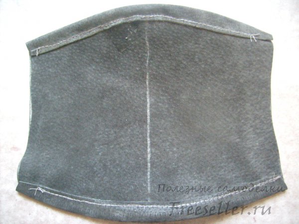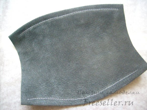 3. Пришиваємо її по бічних швах сумки, поєднавши середини деталей і злегка натягуючи замшу.