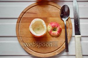 Столовою ложкою акуратно вийняти м’якоть з яблука, залишаючи стінки товщиною близько 1 см.