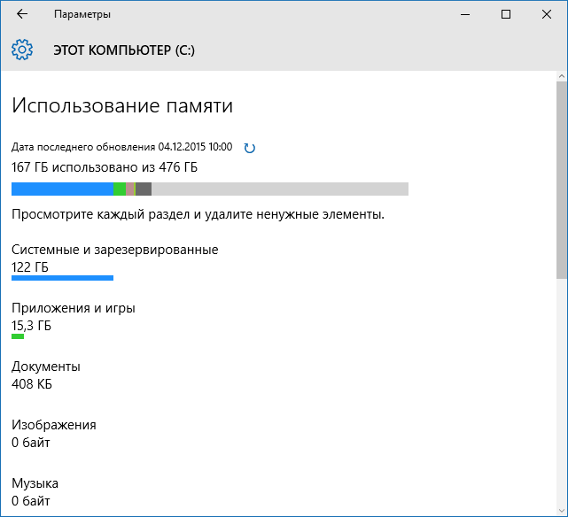 Способи звільнити місце на системному розділі диска (на диску C), описані в наступних розділах цього посібника в рівній мірі працюють для Windows 7, 8.1 та 10. У цій же частині — тільки про тих функціях очищення диска, які з’явилися в Windows 10, а таких з’явилося не мало.