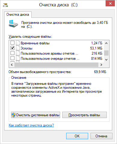 Крім цього, ви можете очистити і системні файли Windows 8.1 і Windows 7 (не критичні для роботи системи) з диска, для чого натисніть кнопку з даним текстом внизу. Програма ще раз перевірить, що саме можна відносно безболісно видалити і після цього, крім однієї вкладки «Очищення диска» стане доступна ще одна — «Додатково».