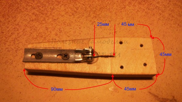 Отвір у пластині для кріплення до двигающейся частини лобзика свердлиться шляхом підгонки.