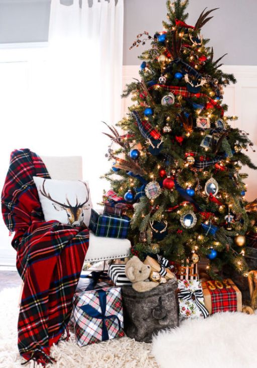 Затишне і по-справжньому домашню рішення для тих, хто віддає перевагу простий, але оригінальний декор. Класична шотландська клітка привнесе в оформлення новорічної ялинки елемент камерності і теплоти. Кілька картатих стрічок і саморобних іграшок, однотонні кулі, колір яких перегукується з основним орнаментом, і м’який плед, недбало накинутий на меблі – ось основні прийоми, які допоможуть втілити ідею в життя.