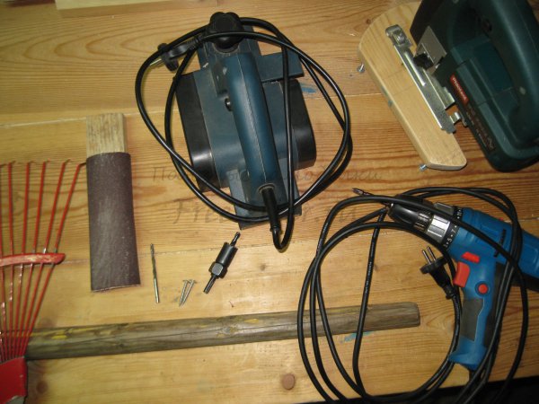 Спочатку електрорубанком обстрогал зламаний черешок від старої лопати.