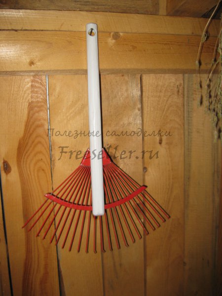 У підсумку на довгу рукоятку, насадив запасні віялові граблі.