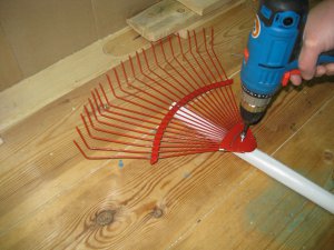 І прикрутив ці граблі до рукоятці двома шурупами з прессшайбой.