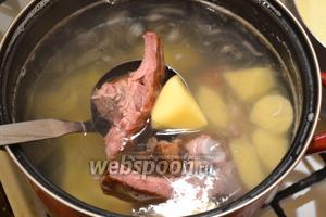 Додати до ребер картоплю, сіль за смаком і варити 20 хвилин. Не забудьте, що копченості солоні, не пересолити суп.