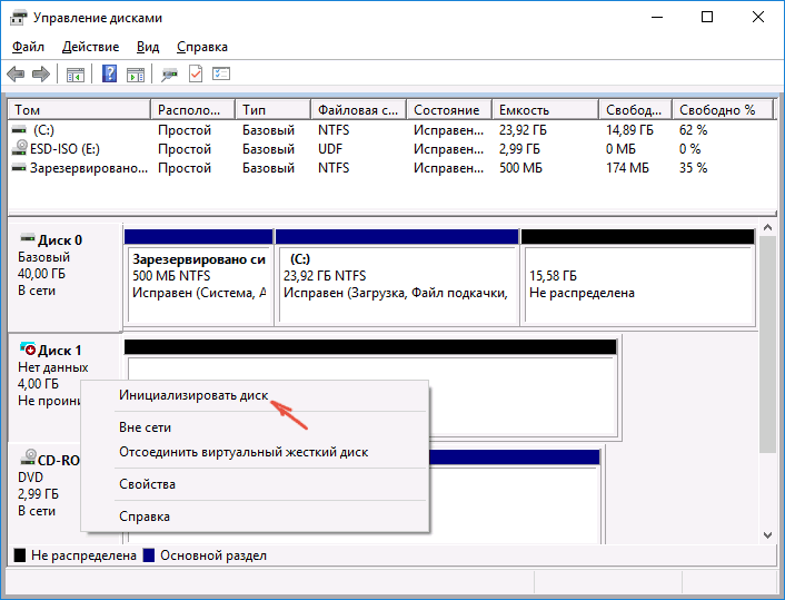 Після короткої ініціалізації відкриється вікно ” керування дисками. В ньому вам слід звернути увагу на наступні речі в нижній частині вікна: чи є там диски, інформації про яких присутні наступні відомості.