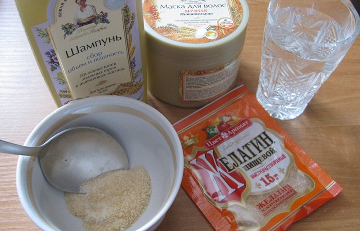 Пошкоджені, посічені пасма легко відновлюються з допомогою желатинової суміші. Маска для волосся з желатином заповнює нерівності кожного волоска, покриваючи його плівкою. Пасма насичуються білком, легко розчісується. Маска з желатину збільшує обсяг. Це не тимчасовий візуальний ефект – багато косметичні салони використовують желатин для росту волосся. З часом зачіска дійсно стає більш об’ємною за рахунок видужування пасм. Для приготування найпростішої желатинової маски вам знадобиться додатково бальзам, мінеральна вода і миска.