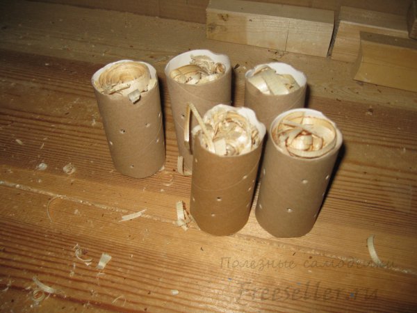 Дійсно, всі ми постійно користуємося туалетним папером, а втулки, що залишаються від рулонів, просто викидаємо. Однак втулки ці зроблені з екологічно чистого картону, який ще й добре горить. Тому їх якраз дуже добре використовувати для виготовлення стружкових контейнерів.