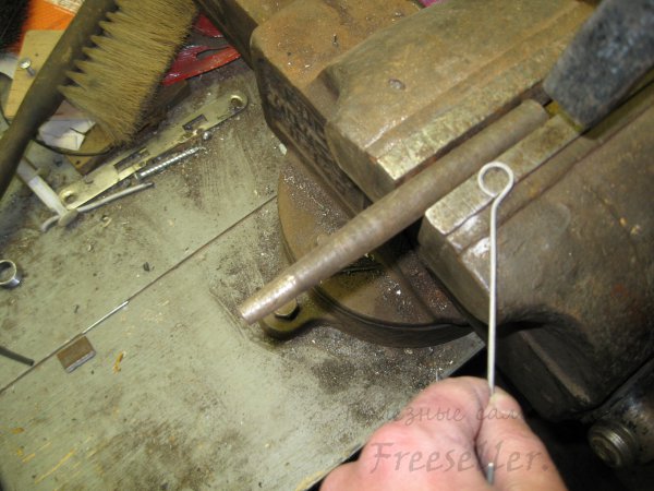 Потім необхідно зробити з цих відрізків гачки. Цю операцію я вирішив робити не пасатижами, а закріпивши в лещатах невеликий сталевий конічний стержень, використовувати його в якості оправки для виготовлення гачків.