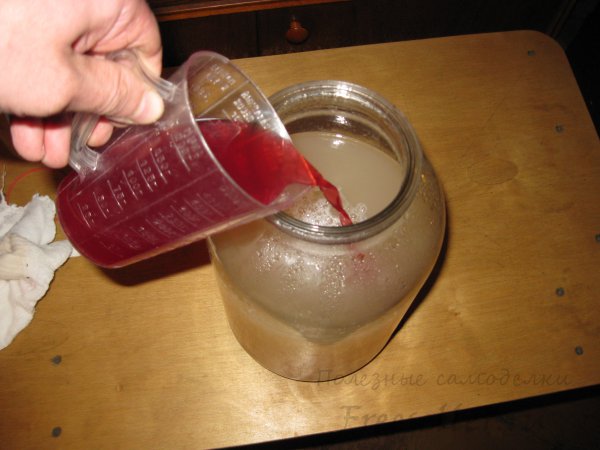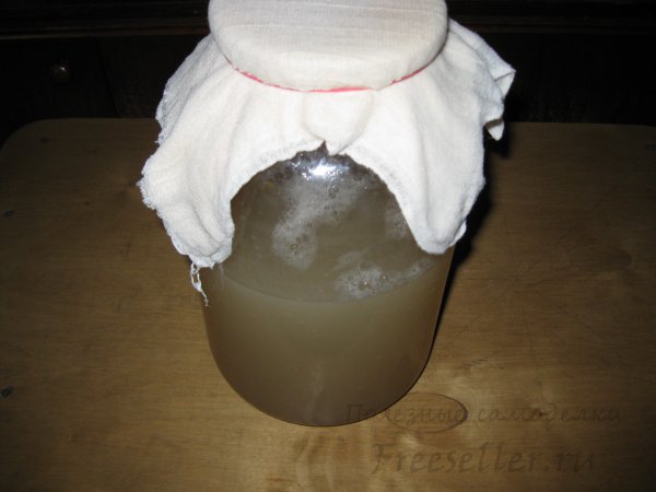 Після цього накриваємо банку марлевою кришкою з гумкою і, так само як і сусло з агрусу і смородини, ставимо в затемнене місце з температурою від 20 до 24 градусів.